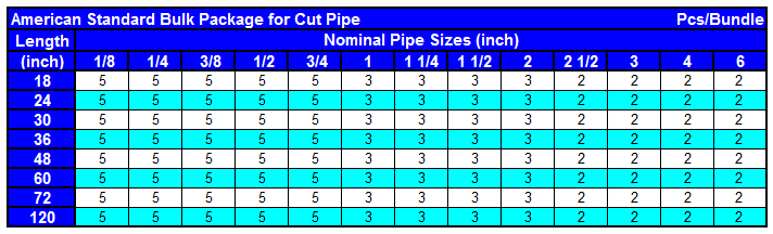 American Standard Bulk Package for Cut Pipe