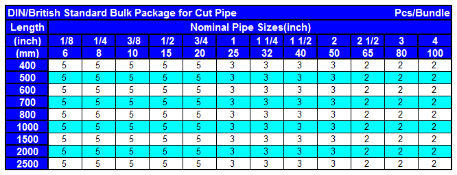 DIN/British Standard Bulk Package for Cut Pipe